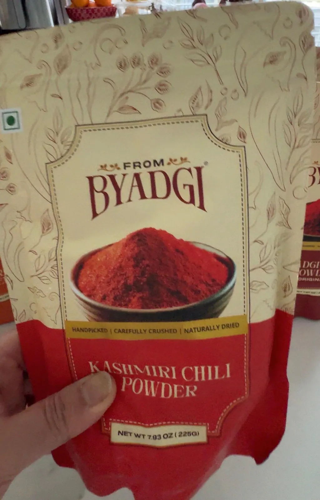 Love the spices from Byadgi, The color the aroma and the flavor is so fresh that you can smell it as soon as you open the packet. These spices give the dish a whole new level of flavor and color. Its a must have for any kitchen. Love it.