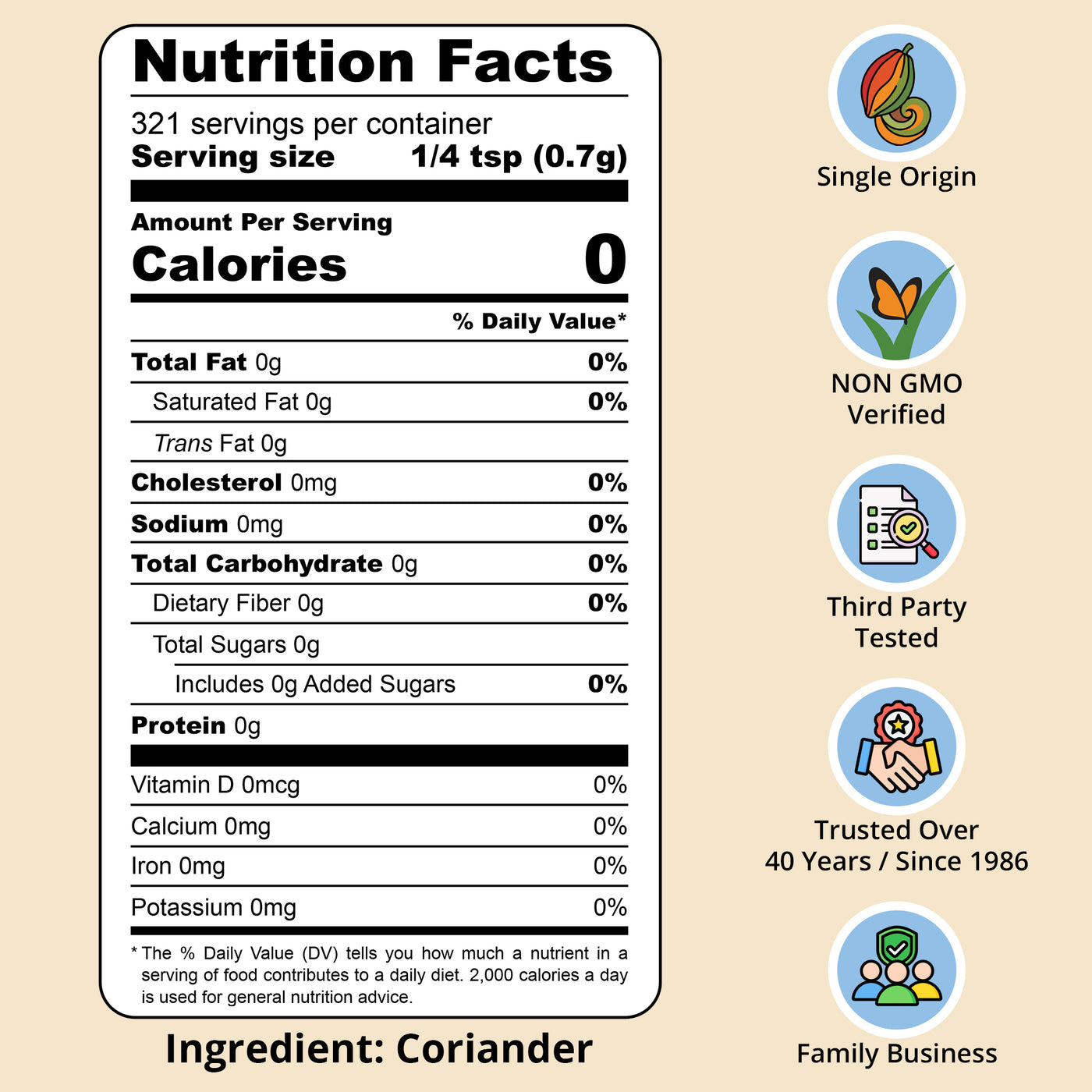 Most grocery store coriander was ground months ago and has lost most of its flavor and aroma by the time you open it. That's why people think coriander "doesn't do anything." Ours is freshly ground and third-party lab tested — pure coriander seed with nothing added.