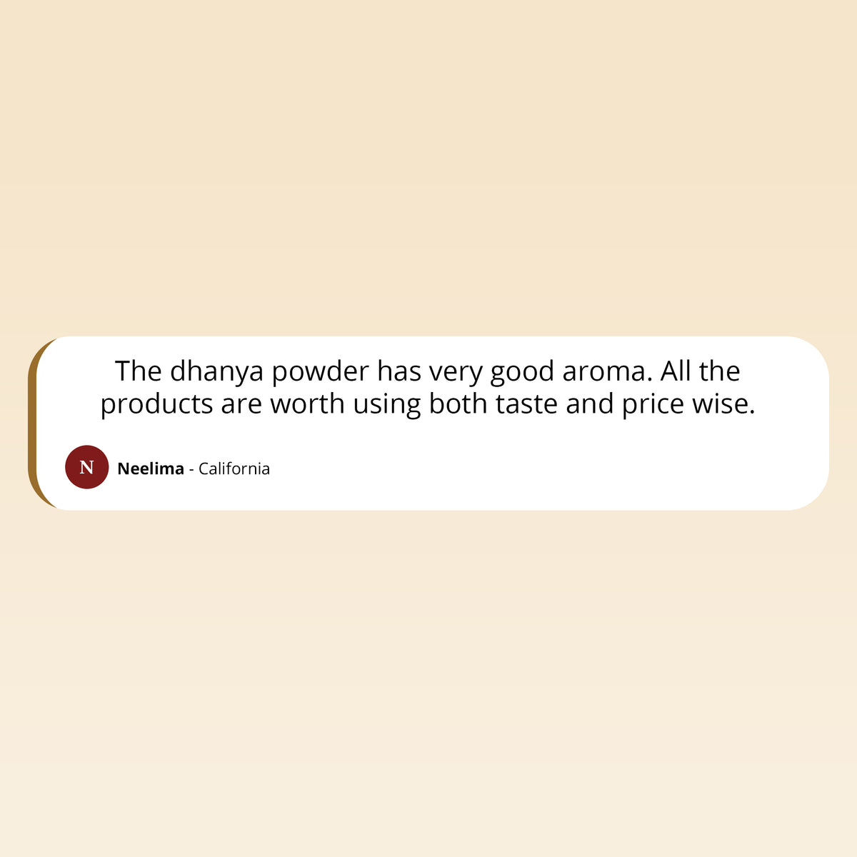 "The fresh aroma and authentic taste remind me of my childhood days. Truly the best spices I've found outside of India."